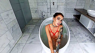 Bath, Short hair, Bathroom, Fake Tits